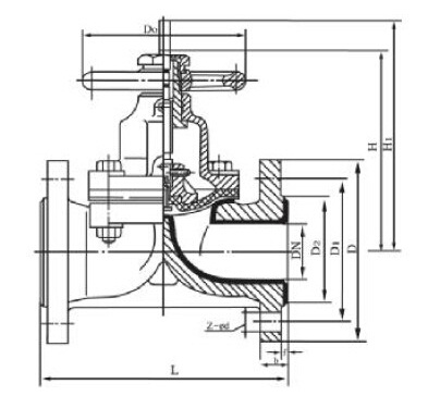 襯氟隔膜閥基本系列為全襯里G41F46、EG41F46、型堰式和G45F46型直流式。復(fù)合隔膜閥將閥體下部內(nèi)腔與閥蓋內(nèi)腔隔開,并與之形成直流通道,使隔膜上部的閥桿、閥瓣等內(nèi)件與介質(zhì)完全隔離,省去填料密封結(jié)構(gòu),介質(zhì)的內(nèi)漏和外漏可同時避免。表面均勻包覆一層FEP。閥體通道內(nèi)表面光滑,流體阻力小,CV值高,流通能力強(qiáng),扭矩適中,采用四級密封結(jié)構(gòu)并在密封面外配以耐溫抗老化的SI橡膠的彈性襯墊閥座,完全達(dá)到介質(zhì)的零泄漏。