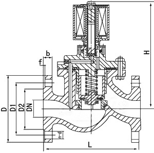本閥是有副閥和主閥兩大部件構(gòu)成的先導式二次開闊的電磁閥。是靠副閥的啟閉來控制主閥的通斷。根據(jù)斷電時所處開關狀態(tài)的不同,可分為常閉電磁閥和常開電磁閥。常閉電磁閥,在段點常位時,副閥口封閉,主閥呈斷路,當電訊號進入導閥線圈時,活動鐵芯受電磁力作用吸上打開副閥口,主閥閥杯內(nèi)壓力導速消失,介質(zhì)壓力將主閥閥杯托上,開啟主閥,工作介質(zhì)便可流通。但當電訊號消失時,活動鐵芯復位,封閉住副閥口,工作介質(zhì)自平衡孔進入閥內(nèi),當壓力趨于平衡時,靠主閥彈簧,閥杯自重及介質(zhì)壓力使閥杯下移,嚴密封住主閥口,閥有呈封閉狀態(tài)。常開電磁閥,在斷電常位時,有彈簧作用,副閥口打開,主閥流通。當電訊號進入副閥線圈時,活動鐵芯受電磁作應吸下,當壓力趨于平衡時,靠主閥彈簧、閥杯自重及介質(zhì)壓力使閥杯下移,嚴密封住閥口,閥門呈關閉狀態(tài)。當主閥斷電時,電磁力消失,副閥找開,主閥杯內(nèi)壓力迅速消失,介質(zhì)壓力將主閥閥杯托上,開啟主閥口,介質(zhì)流通,閥呈開啟狀態(tài)。