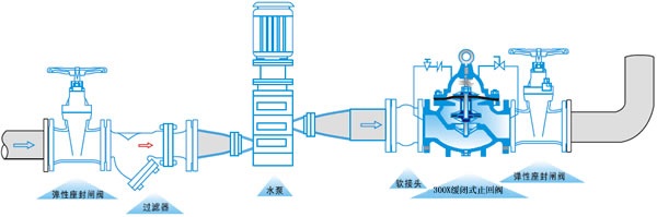 300X緩閉止回閥由主閥、單向閥、針閥、球閥、微形過濾器和壓力表組成水力控制接管系統(tǒng)。利用水力自動操作,可使主閥的開啟或關(guān)閉速度。防止水鍾水擊的產(chǎn)生,以達到緩閉消聲的效果。