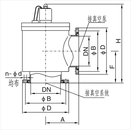 DYC-JQ型系列電磁真空壓差式充氣閥,是安裝在機(jī)械真空泵上的專用閥門。安裝于機(jī)械真空泵的進(jìn)氣口,并于泵同步開啟和關(guān)閉。當(dāng)泵停止工作或電源突然中斷時(shí),閥門能依靠大氣與真空的壓差力使閥板自動關(guān)閉,將真空系統(tǒng)封閉,保持其真空度,并將大氣通過閥的節(jié)流孔充入泵腔內(nèi),從而避免泵油逆流污染真空系統(tǒng)。